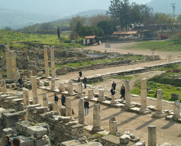Чем дальше от центра Эфеса, тем меньше сохранившихся или раскопанных археологами зданий и площадей. Некогда центральная Агора сейчас представляет собой лужайку с грудой камней. Там, где заканчивается Мраморный проспект, начинаются еще два: проспект Стадиум уходит в небольшой пролесок и ведет к развалинам Стадиона, а проспект Лиман - к портовым воротам и баням.
