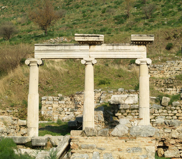 Дальше от муниципалитета путь туриста лежит к храму Домитьяна и мавзолею Меммиуса. Последний украшен хорошо сохранившимися рельефными рисунками. Под храмом Домитьяна археологи нашли источник воды. Здесь же, судя по рисунку на одном из гранитных камней, некогда располагалась эфесская аптека.