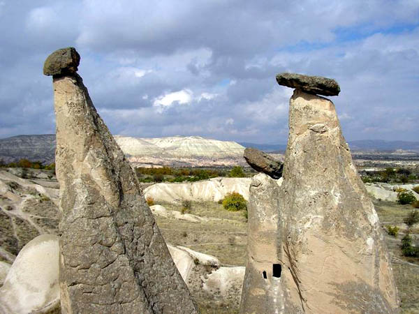 Приметив на карте ближайшую Розовую долину (Rose Valley), я направился к ней. Идти пришлось недолго. Удивительные ландшафты начинаются прямо у окраины Гереме, так что, едва выйдя из деревни, вы оказываетесь в той самой волшебной Каппадокии. Сложно описать все, что предстает перед глазами изумленного путешественника, попавшего сюда. Причудливые горы, странные холмистые долины и скалы таких необычных форм, что порой бывает сложно поверить в их природное происхождение - конусы, пирамиды, ракеты, животные, фаллосы, разные уродцы и многое-многое другое! Как правило, каждая долина отличается собственной окраской скал, которая меняется от белой и желтой до красной и шоколадно-коричневой. Некоторые из этих шедевров природы вы можете увидеть в моем фотоальбоме. Особенной известностью пользуются так называемые "грибы" - скалы, которые по форме действительно очень похожи на грибы гигантских размеров. Кажется, что вы попали в какую-то волшебную страну из детских мультфильмов и снов. Испытываешь какой-то дикий, ни с чем не сравнимый восторг от созерцания этих шалостей матушки Природы. Так и хочется воскликнуть: "Невероятно! Этого не может быть!" То и дело кажется, что сейчас из-за скалы выглянет какой-нибудь маленький гномик, эльф или даже хоббит. Постоянное ощущение, что участвуешь в каком-то веселом праздничном карнавале, что лишь на миг затихла музыка, и замерли все клоуны. Но пройдет миг, и все вновь запляшут в этом безумном и сумасшедшем хороводе...